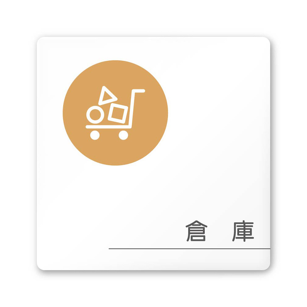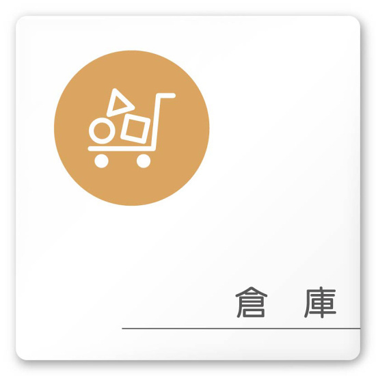 デザイナールームプレート 飲食店向け サークル 倉庫 白マットアクリル W150×H150 (AC-1515-RA-KM2-0118)