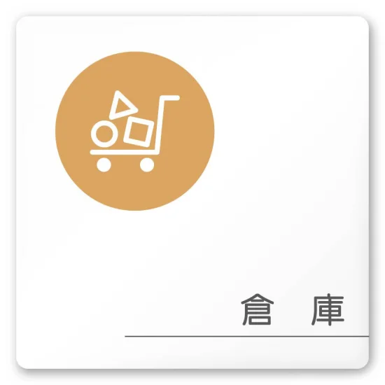 - デザイナールームプレート 飲食店向け サークル 倉庫 白マットアクリル W150×H150 (AC-1515-RA-KM2-0118)