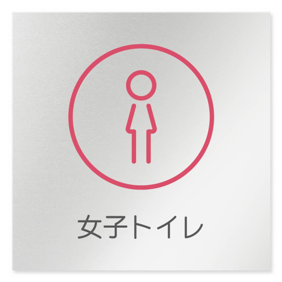 商品説明:デザイナールームプレート 飲食店向け サークル 女子トイレ2 アルミ板 W150×H150 (AL-1515-RB-KM2-0106)