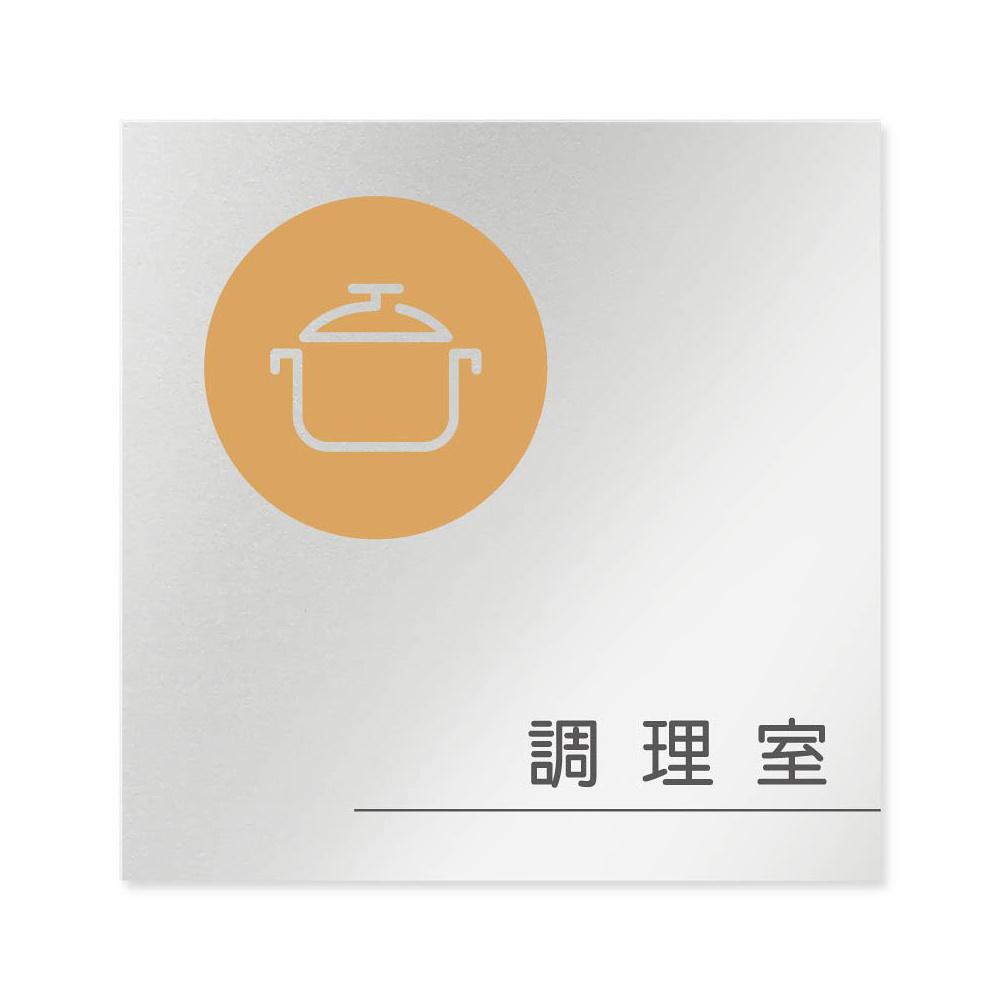 デザイナールームプレート 飲食店向け サークル 調理室 アルミ板 W150×H150 (AL-1515-RB-KM2-0111)