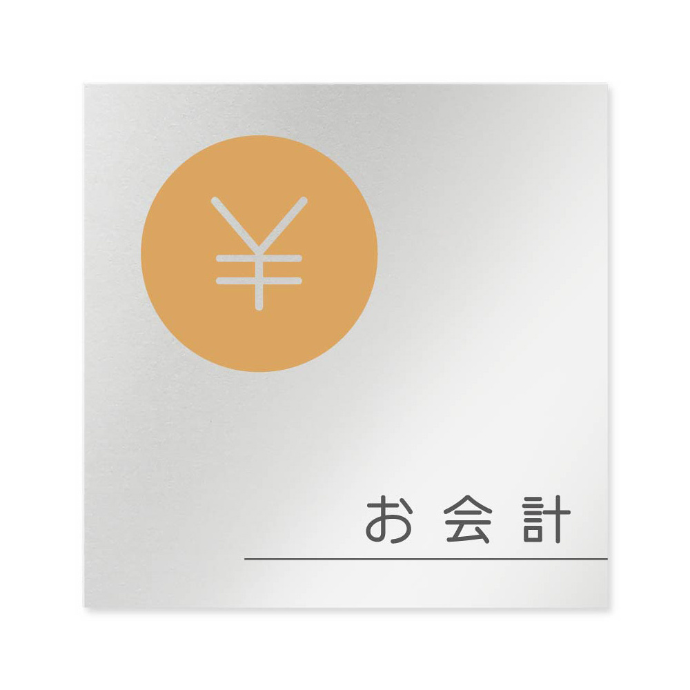 デザイナールームプレート 飲食店向け サークル お会計 アルミ板 W150×H150 (AL-1515-RB-KM2-0116)