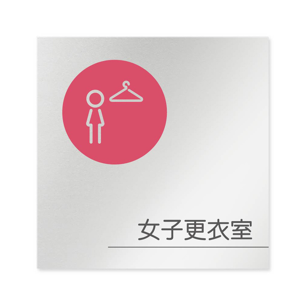 デザイナールームプレート 飲食店向け サークル 女子更衣室 アルミ板 W150×H150 (AL-1515-RA-KM2-0120)