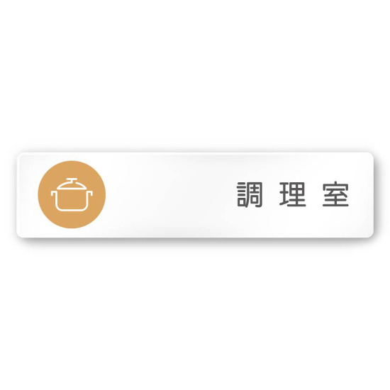 デザイナールームプレート 飲食店向け サークル 調理室 白マットアクリル W250×H60 (AC-2560-RA-KM2-0211)