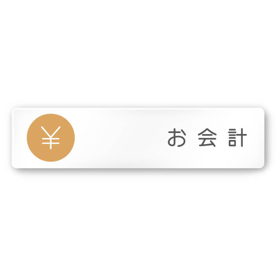 デザイナールームプレート 飲食店向け サークル お会計 白マットアクリル W250×H60 (AC-2560-RA-KM2-0216)