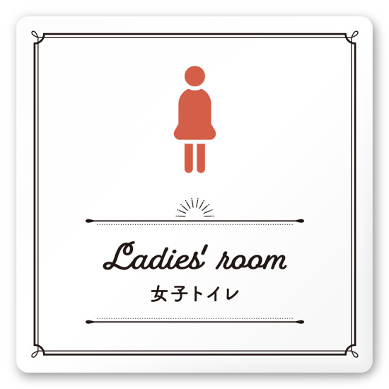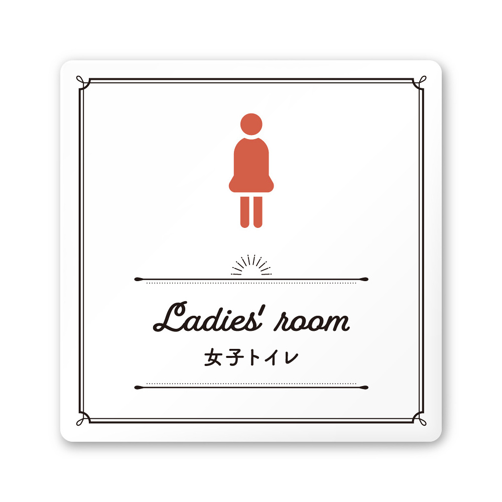 デザイナールームプレート 飲食店向け クラシック 女子トイレ2 白マットアクリル W150×H150 (AC-1515-RA-NT1-0106)