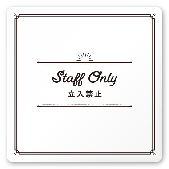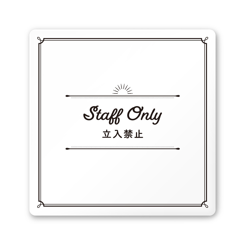 デザイナールームプレート 飲食店向け クラシック Staff only 白マットアクリル W150×H150 (AC-1515-RA-NT1-0110)