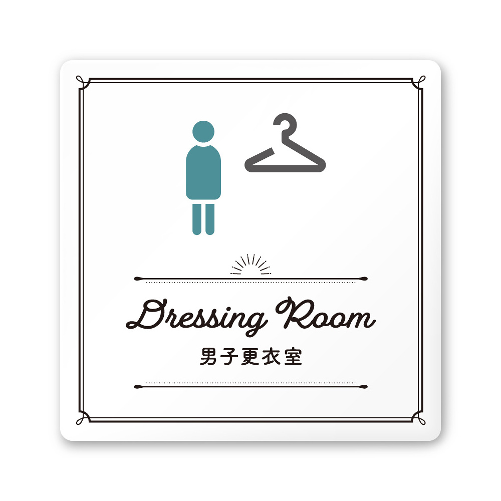 デザイナールームプレート 飲食店向け クラシック 男子更衣室 白マットアクリル W150×H150 (AC-1515-RA-NT1-0119)