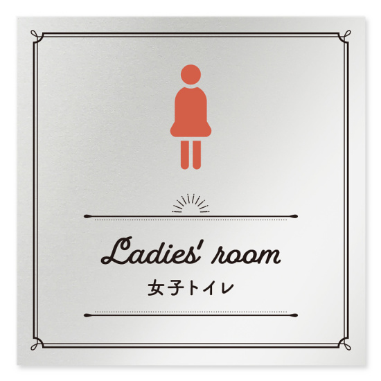 商品説明:デザイナールームプレート 飲食店向け クラシック 女子トイレ2 アルミ板 W150×H150 (AL-1515-RB-NT1-0106)