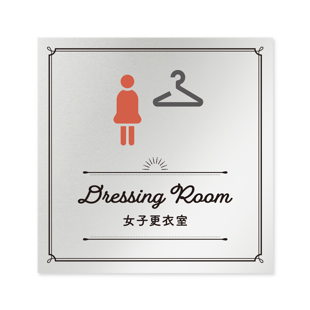 商品説明:デザイナールームプレート 飲食店向け クラシック 女子更衣室 アルミ板 W150×H151 (AL-1515-RA-NT1-0120)
