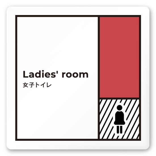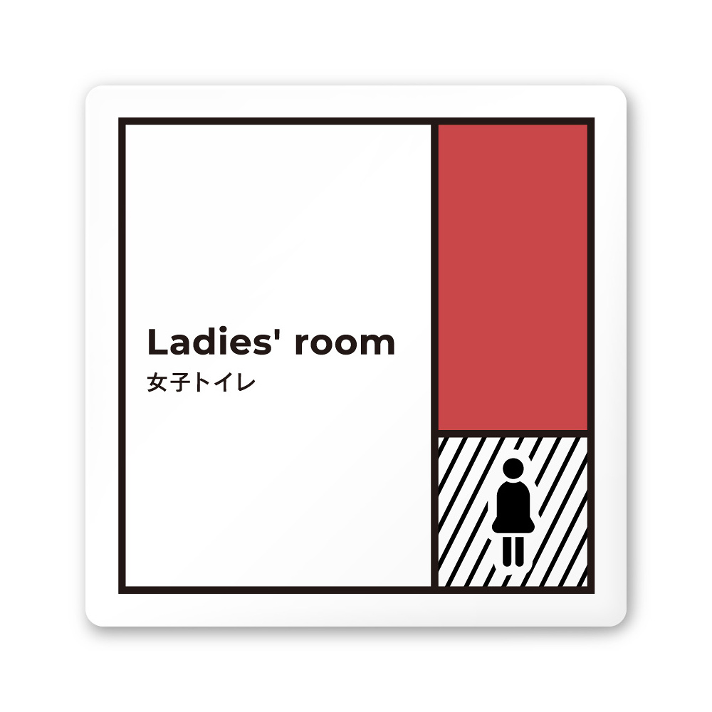 デザイナールームプレート 飲食店向け ブロック 女子トイレ2 白マットアクリル W150×H150 (AC-1515-RA-NT2-0106)