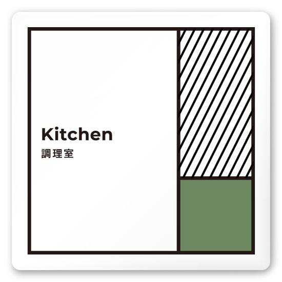 デザイナールームプレート 飲食店向け ブロック 調理室 白マットアクリル W150×H150 (AC-1515-RA-NT2-0111)