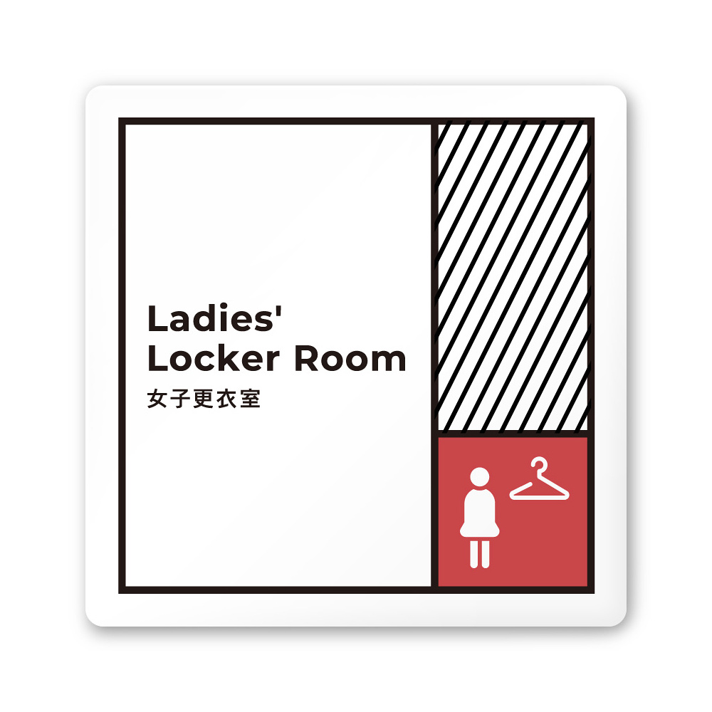 デザイナールームプレート 飲食店向け ブロック 女子更衣室 白マットアクリル W150×H150 (AC-1515-RB-NT2-0120)