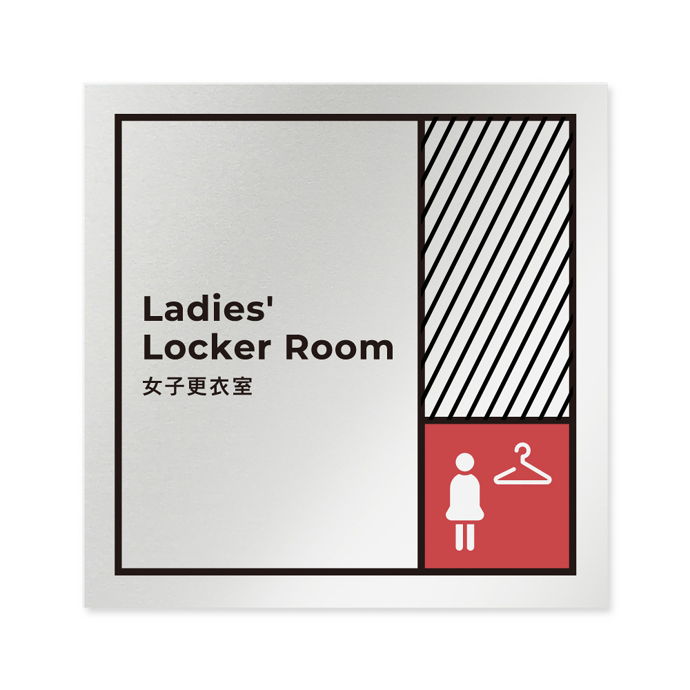 デザイナールームプレート 飲食店向け ブロック 女子更衣室 アルミ板 W150×H150 (AL-1515-RA-NT2-0120)