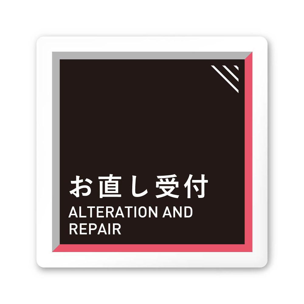 デザイナールームプレート アパレル向け タイル お直し受付 白マットアクリル W150×H150 (AC-1515-AA-HS1-0114)