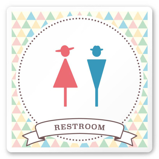 デザイナールームプレート アパレル向け ファンシー トイレ1 白マットアクリル W150×H150 (AC-1515-AA-HS2-0101)
