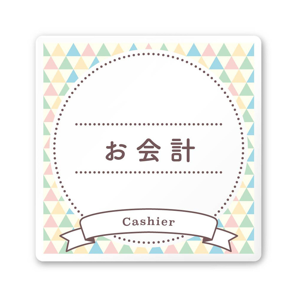 デザイナールームプレート アパレル向け ファンシー お会計 白マットアクリル W150×H150 (AC-1515-AA-HS2-0113)