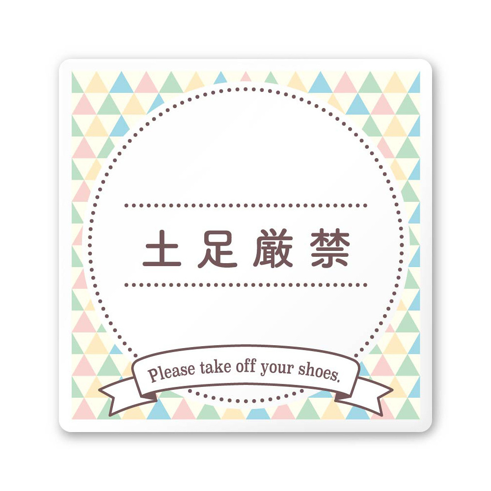 商品説明:デザイナールームプレート アパレル向け ファンシー 土足厳禁 白マットアクリル W150×H150 (AC-1515-AA-HS2-0118)