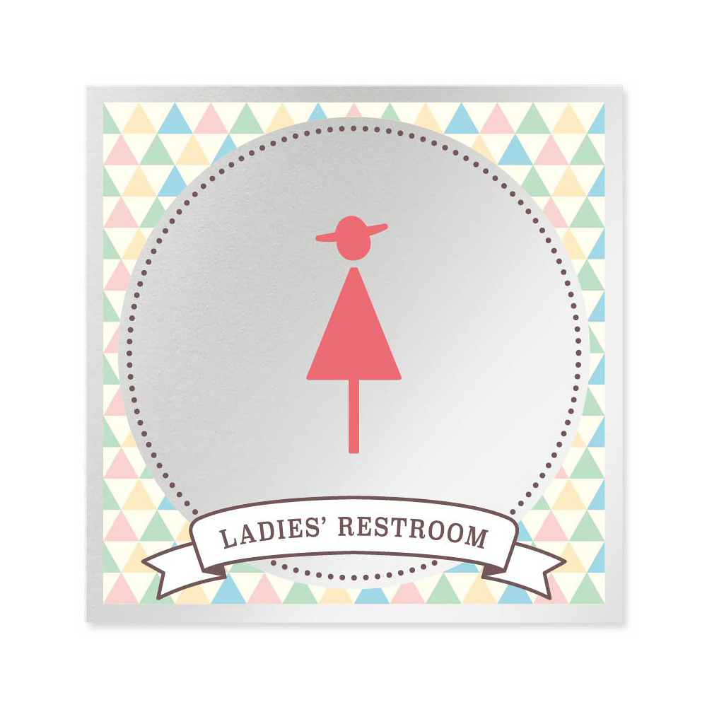 商品説明:デザイナールームプレート アパレル向け ファンシー 女子トイレ アルミ板 W150×H150 (AL-1515-AB-HS2-0104)
