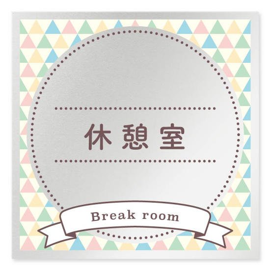 商品説明:デザイナールームプレート アパレル向け ファンシー 休憩室 アルミ板 W150×H150 (AL-1515-AB-HS2-0110)