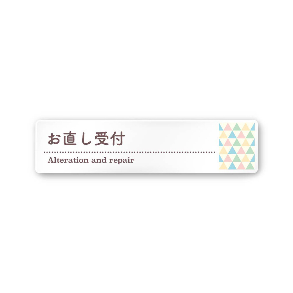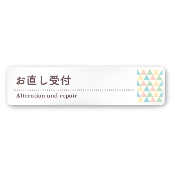 デザイナールームプレート アパレル向け ファンシー お直し受付 白マットアクリル W250×H60 (AC-2560-AA-HS2-0214)