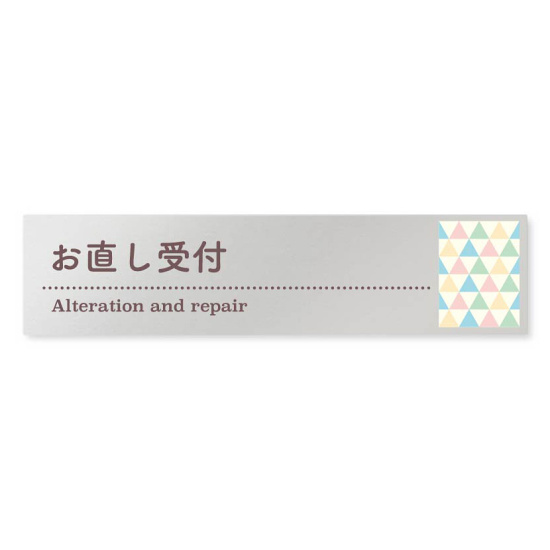 デザイナールームプレート アパレル向け ファンシー お直し受付 アルミ板 W250×H60 (AL-2560-AB-HS2-0214)