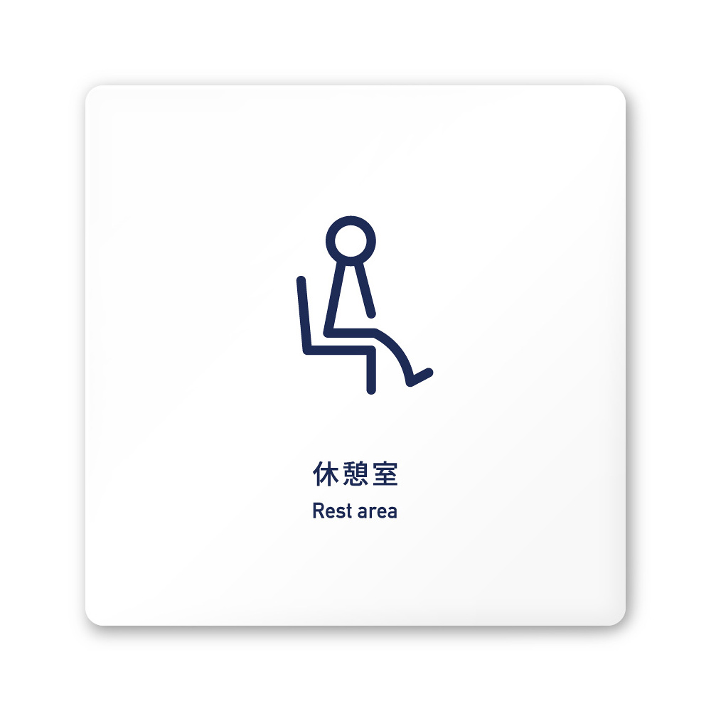 デザイナールームプレート アパレル向け シンプル 休憩室 白マットアクリル W150×H150 (AC-1515-AA-IM1-0110)