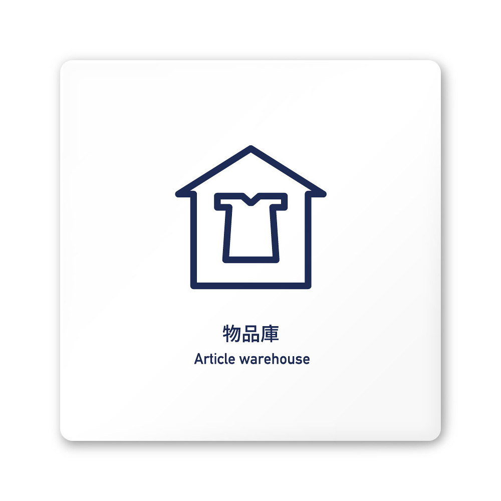 デザイナールームプレート アパレル向け シンプル 物品庫 白マットアクリル W150×H150 (AC-1515-AA-IM1-0116)