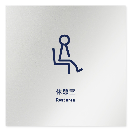 商品説明:デザイナールームプレート アパレル向け シンプル 休憩室 アルミ板 W150×H150 (AL-1515-AB-IM1-0110)