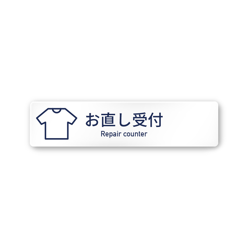 デザイナールームプレート アパレル向け シンプル お直し受付 白マットアクリル W250×H60 (AC-2560-AA-IM1-0214)