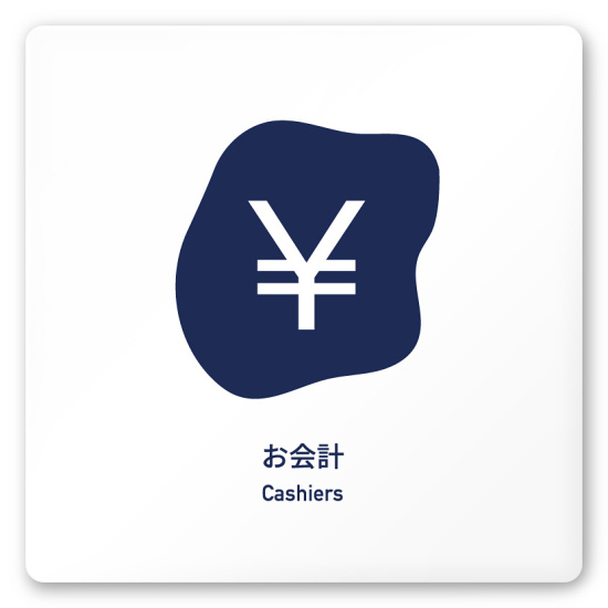 デザイナールームプレート アパレル向け 花びら お会計 白マットアクリル W150×H150 (AC-1515-AA-IM2-0113)