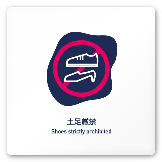 デザイナールームプレート アパレル向け 花びら 土足厳禁 白マットアクリル W150×H150 (AC-1515-AA-IM2-0118)