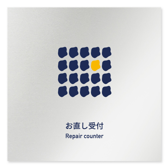 デザイナールームプレート アパレル向け 花びら お直し受付 アルミ板 W150×H150 (AL-1515-AB-IM2-0114)