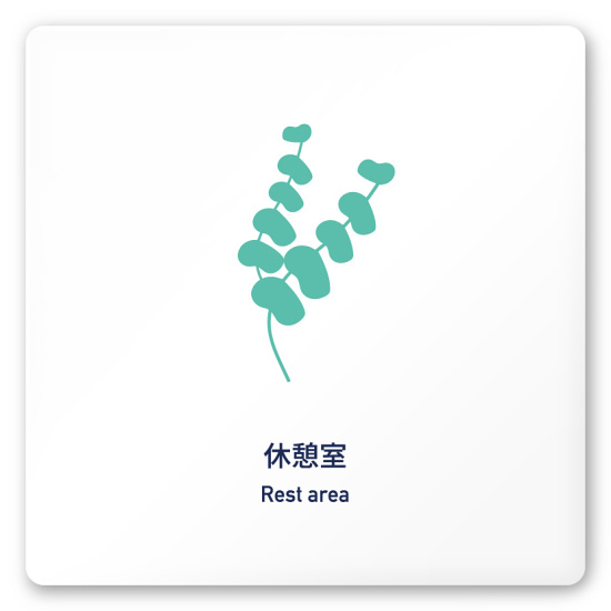 デザイナールームプレート アパレル向け ボタニカル 休憩室 白マットアクリル W150×H150 (AC-1515-AA-IM3-0110)