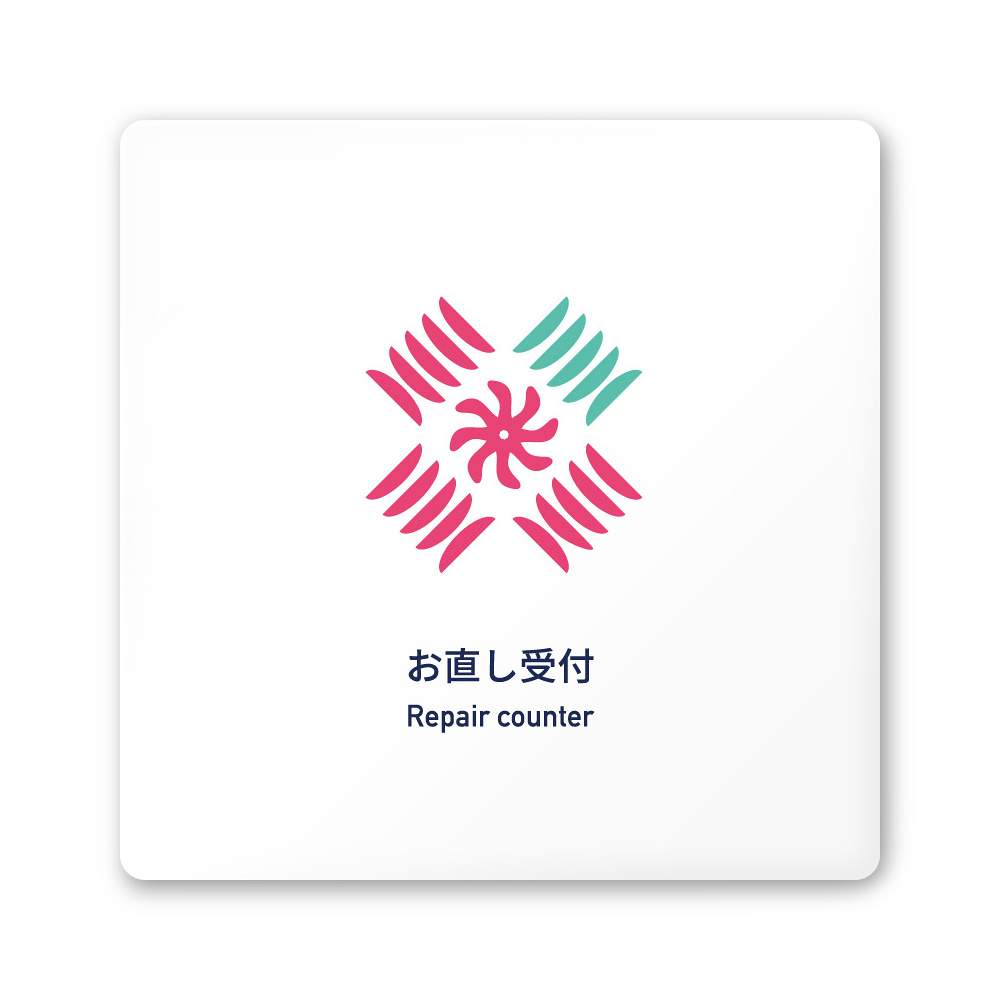 デザイナールームプレート アパレル向け ボタニカル お直し受付 白マットアクリル W150×H150 (AC-1515-AA-IM3-0114)