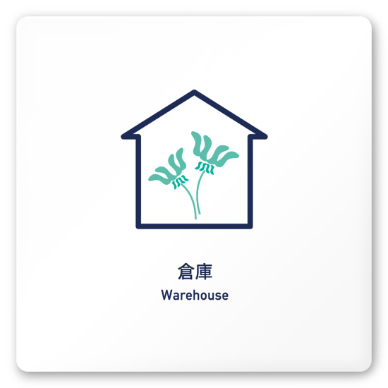 デザイナールームプレート アパレル向け ボタニカル 倉庫 白マットアクリル W150×H150 (AC-1515-AA-IM3-0115)