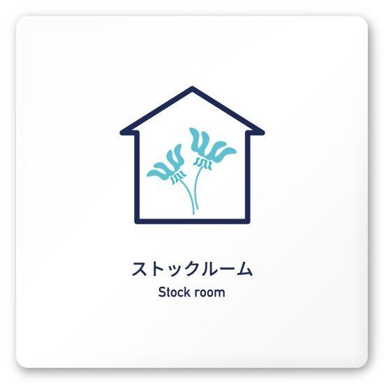 商品説明:デザイナールームプレート アパレル向け ボタニカル ストックルーム 白マットアクリル W150×H150 (AC-1515-AA-IM3-0117)