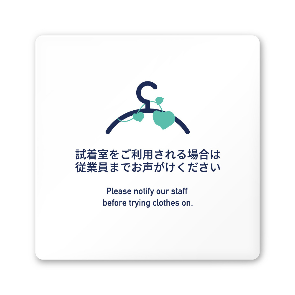 商品説明:デザイナールームプレート アパレル向け ボタニカル 試着利用案内 白マットアクリル W150×H150 (AC-1515-AB-IM3-0120)