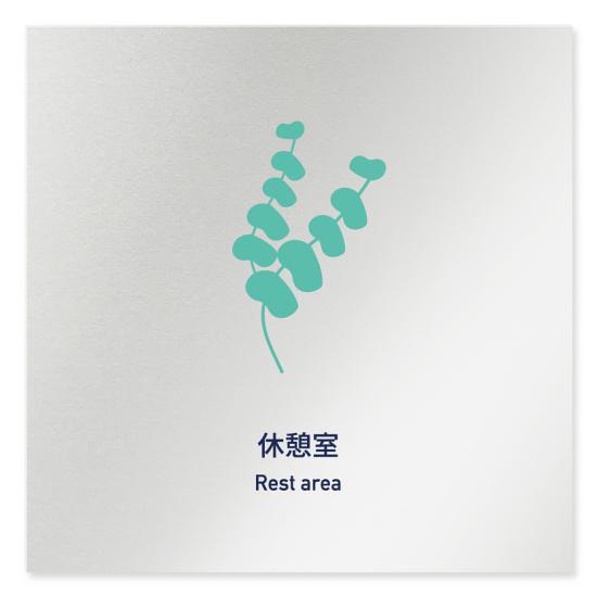 デザイナールームプレート アパレル向け ボタニカル 休憩室 アルミ板 W150×H150 (AL-1515-AB-IM3-0110)