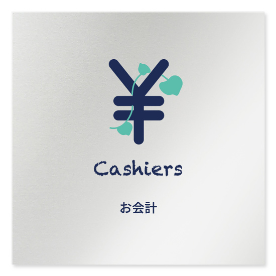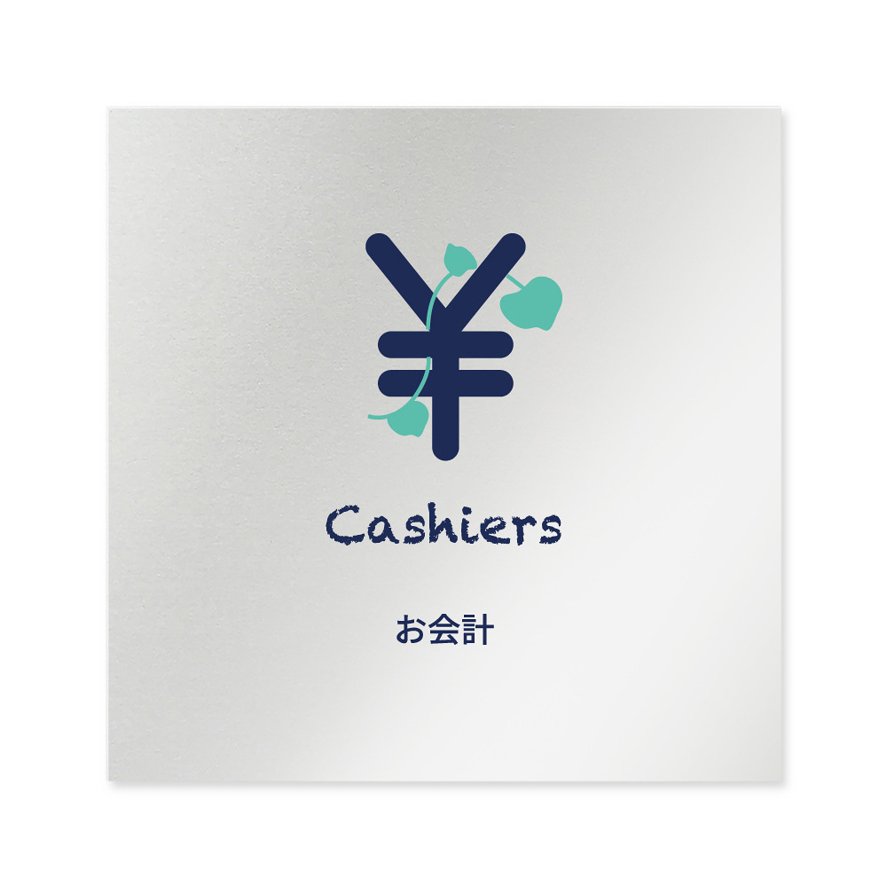 デザイナールームプレート アパレル向け ボタニカル お会計 アルミ板 W150×H150 (AL-1515-AB-IM3-0113)