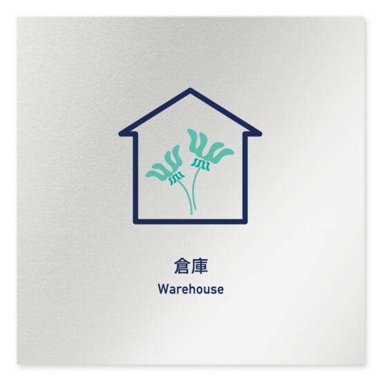 デザイナールームプレート アパレル向け ボタニカル 倉庫 アルミ板 W150×H150 (AL-1515-AB-IM3-0115)