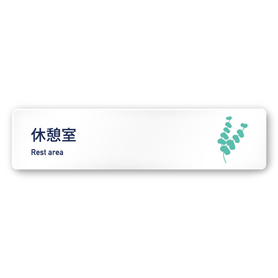 デザイナールームプレート アパレル向け ボタニカル 休憩室 白マットアクリル W250×H60 (AC-2560-AA-IM3-0210)