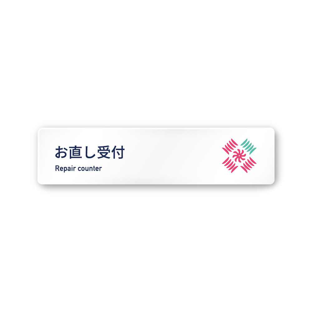 商品説明:デザイナールームプレート アパレル向け ボタニカル お直し受付 白マットアクリル W250×H60 (AC-2560-AA-IM3-0214)