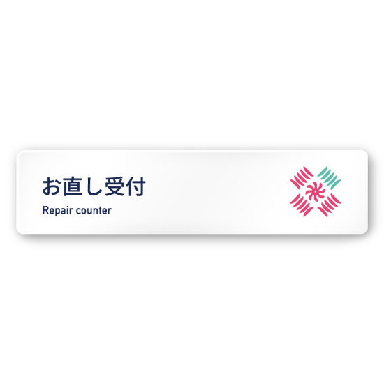 デザイナールームプレート アパレル向け ボタニカル お直し受付 白マットアクリル W250×H60 (AC-2560-AA-IM3-0214)