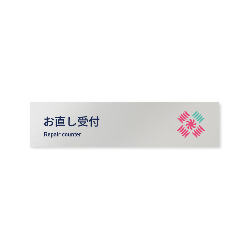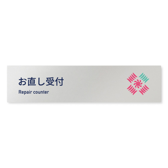 商品説明:デザイナールームプレート アパレル向け ボタニカル お直し受付 アルミ板 W250×H60 (AL-2560-AB-IM3-0214)