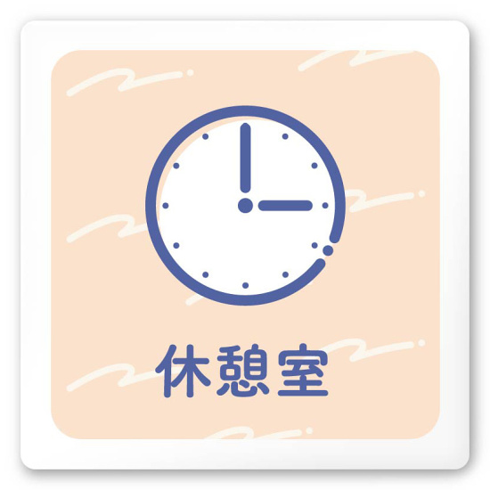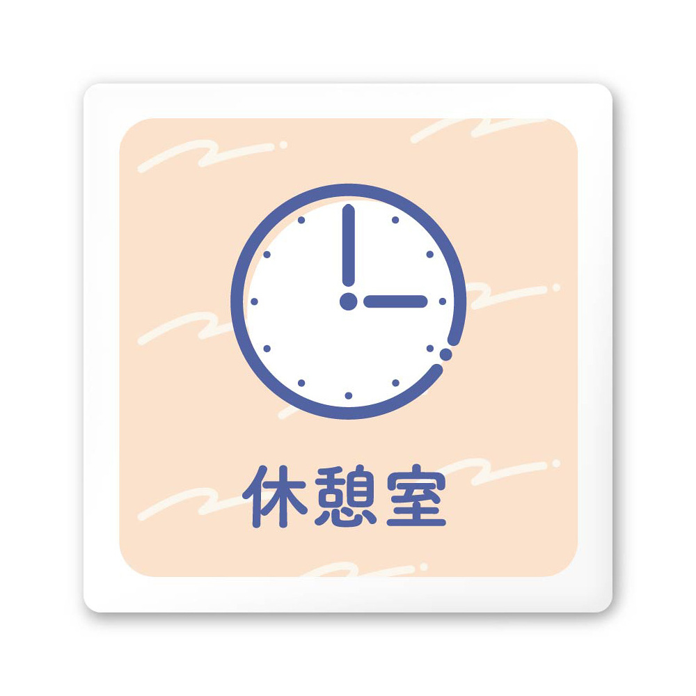 デザイナールームプレート アパレル向け パステル 休憩室 白マットアクリル W150×H150 (AC-1515-AA-KM1-0110)