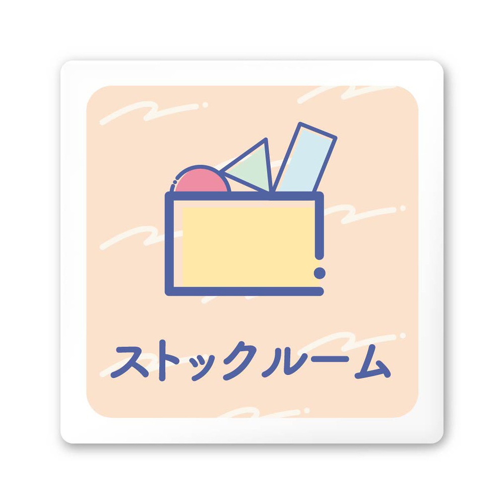デザイナールームプレート アパレル向け パステル ストックルーム 白マットアクリル W150×H150 (AC-1515-AA-KM1-0117)