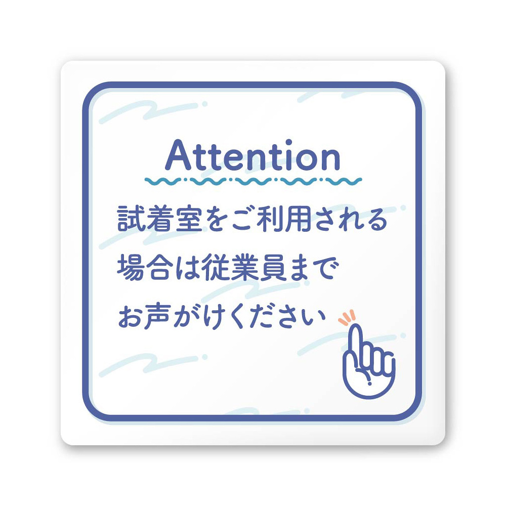 デザイナールームプレート アパレル向け パステル 試着利用案内 白マットアクリル W150×H150 (AC-1515-AB-KM1-0120)