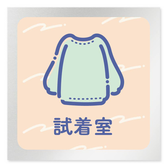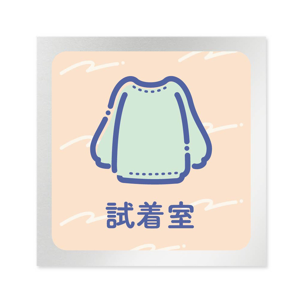 商品説明:デザイナールームプレート アパレル向け パステル 試着室 アルミ板 W150×H150 (AL-1515-AB-KM1-0107)