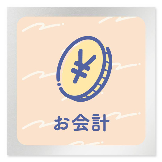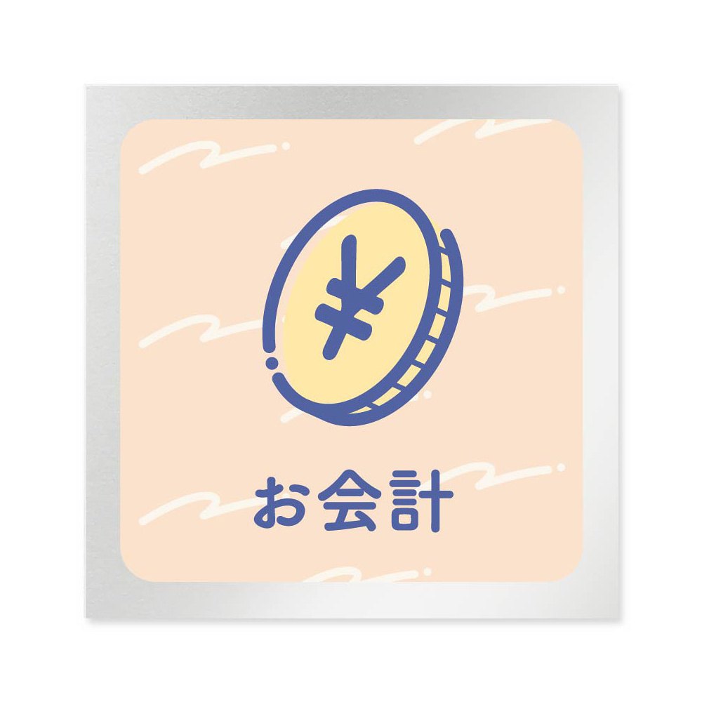 デザイナールームプレート アパレル向け パステル お会計 アルミ板 W150×H150 (AL-1515-AB-KM1-0113)