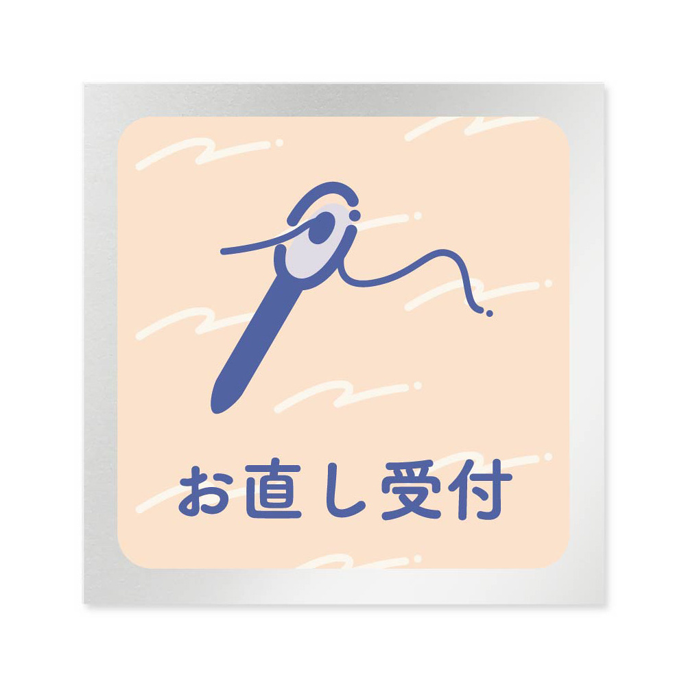 デザイナールームプレート アパレル向け パステル お直し受付 アルミ板 W150×H150 (AL-1515-AB-KM1-0114)
